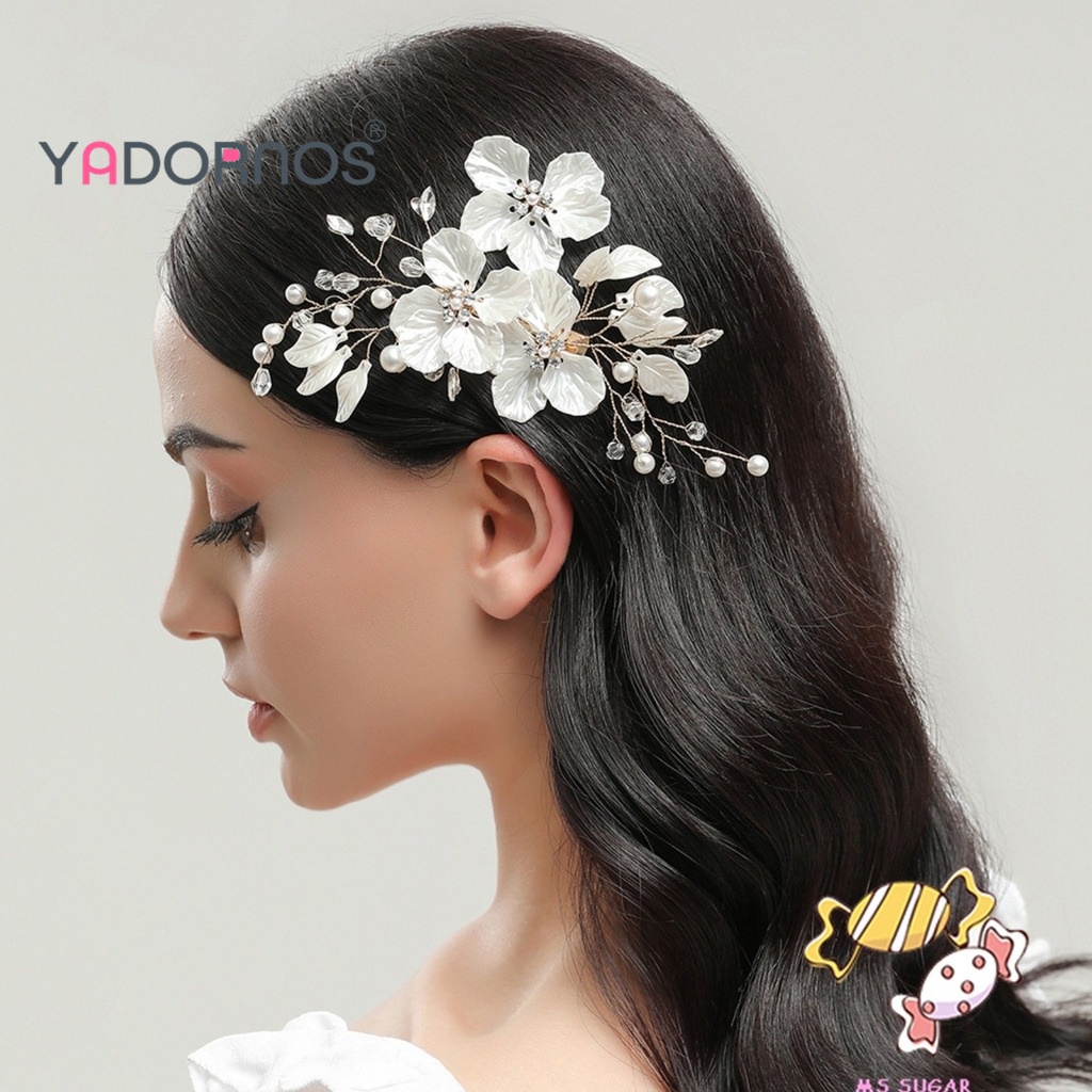 YADORNOS Jepit Rambut Bunga Putih Hiasan Kepala Pernikahan Vintage Lucu Gaya Cina Hanfu untuk Gaya Rambut Panjang Keriti