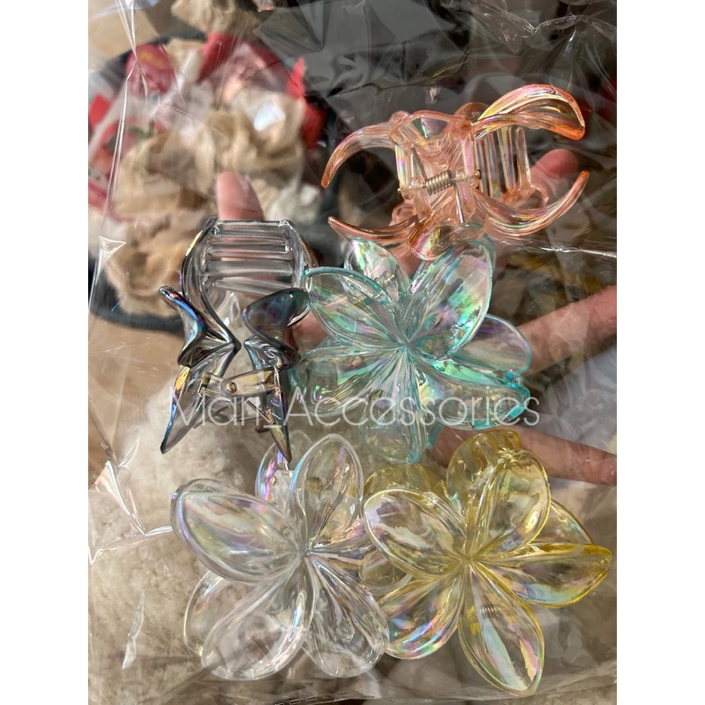 Jedai Jepit Rambut Bunga Kamboja Hologram (8cm) 1 lusin/12pcs – Hair Claw Aesthetic Elegan Warna Pelangi yg