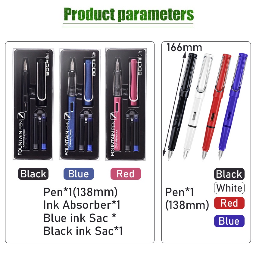 Set Pena Tinta Fountain 0.38mm Kualitas Tinggi Untuk Menulis / Hadiah / Sekolah / Kantor