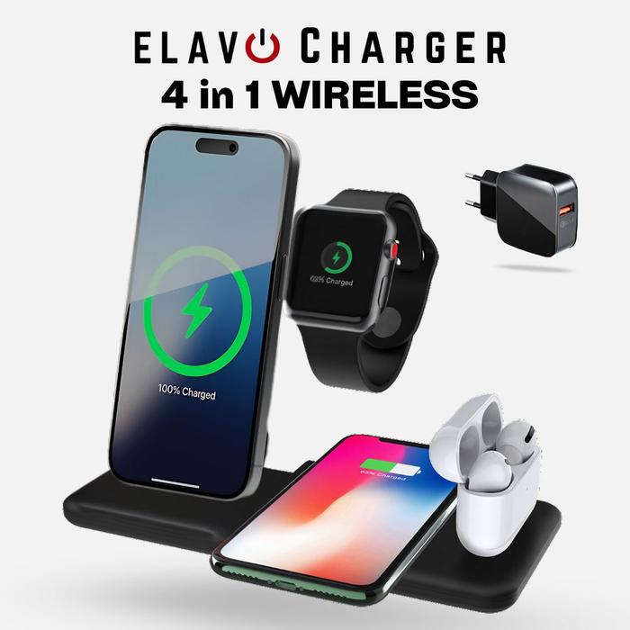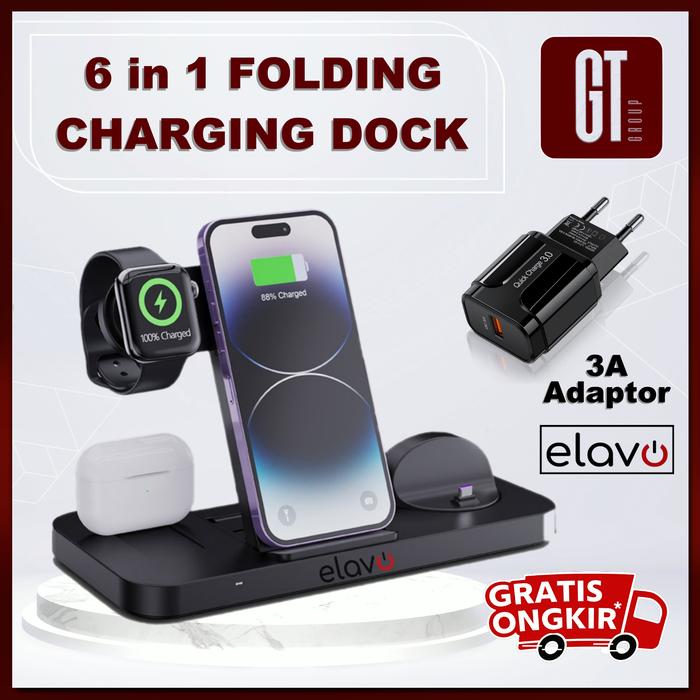 Elavo Charger 6 In 1 Kompatibel Untuk Apple Fast Wireless Charging Dock Stand Iphone Watch Iphone 16 15 14 13 12 Android