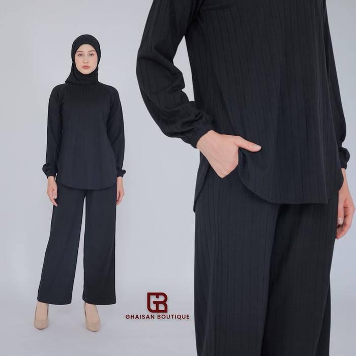 Ziana One Set Knit || Satu Set Atasan Blouse Dan Celana By Ghaisanboutique Karet Kulot | Setelan Wanita Jilbab Muslim P