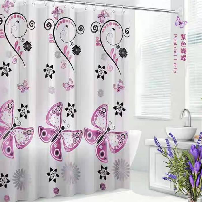 Tirai Kamar Mandi Anti Air Bahan Peva Sudah Dilengkapi Dengan Pengait Dan Cincin Besi Tanpa Tiang - Sun Flower