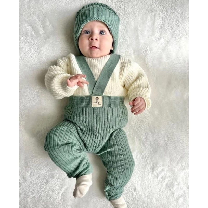 One set knit bayi 2-18 bulan size S M L overall baju anak new born + kupluk over all ciput lucu