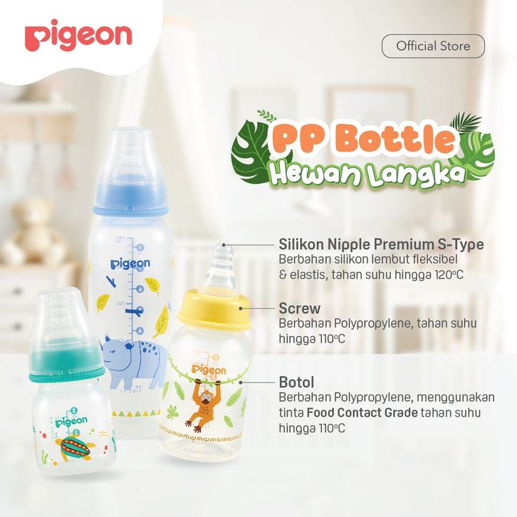 Botol Susu Pigeon Slim Neck PP RP 120ml Hewan Langka w/S-Type Nipple Botol Susu Bayi Pigeon Original Termurah