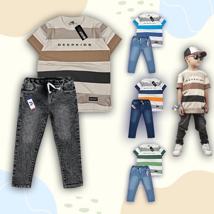 Setelan Anak Laki Laki Kaos Distro & Celana Jeans Panjang Premium Usia 1 2 3 4 5 6 7 8 9 10 11 12 Tahun Set Fullprint Je