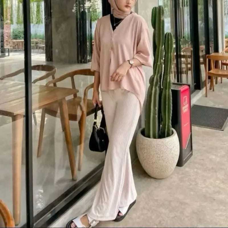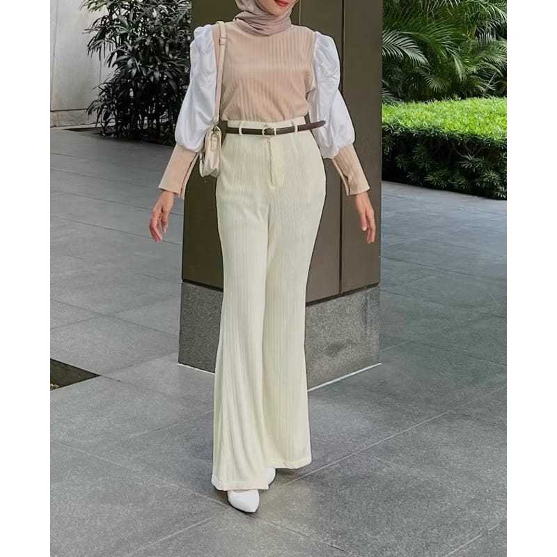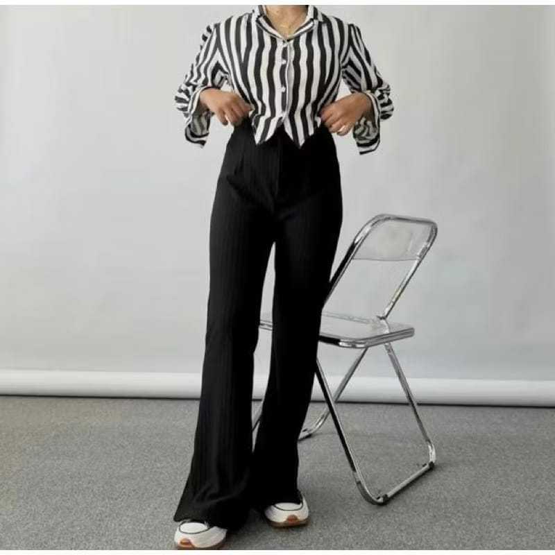 Celana Cutbray Knit Premium Wanita Higwaist Celana Wanita Kekinian Korean Style