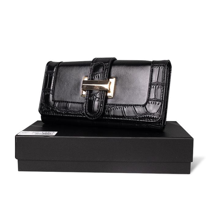 Ceka Dompet Wanita Serbaguna Panjang Dompet Croco Kulit Dompet Kartu Terbaru - Lindex Long Wallet - Black, Box