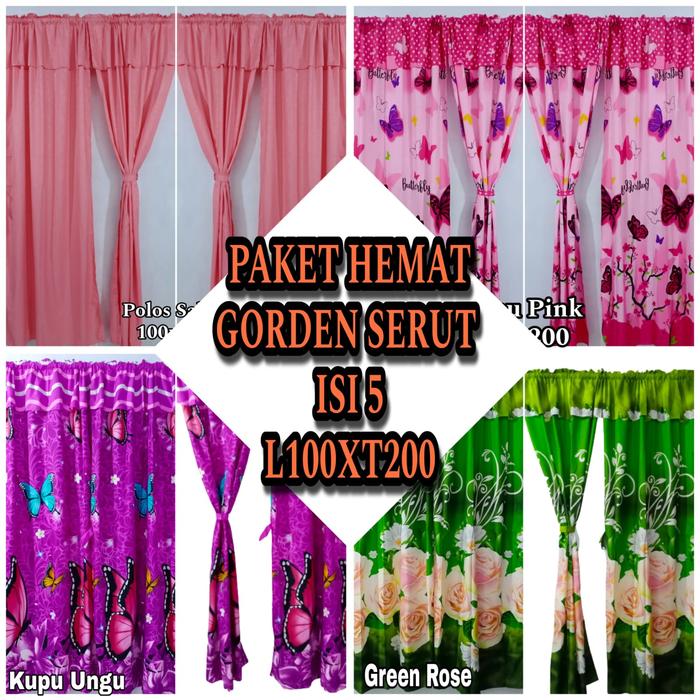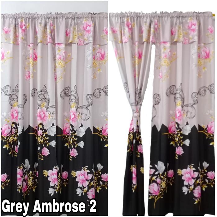 Paket Hemat Gorden Serut Isi 5 Pintu Dan Jendela 100X200 Katun Disperse Motif Pilih Divariasi - Grey Ambrose, 5 Gorden 1