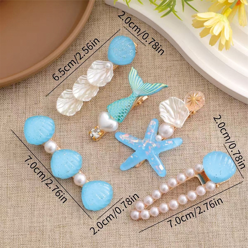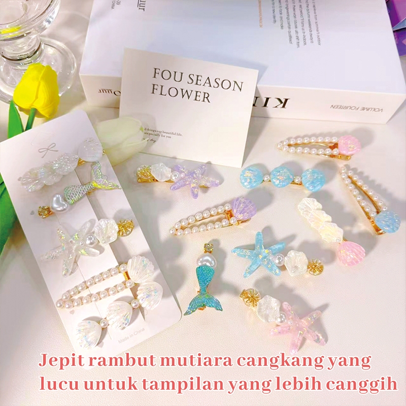 Wavvy Jepit Rambut Mutiara Lucu Korea 5 pcs / Jepit Rambut Kerang Bintang Laut Berwarna-warni / Fashion Hair Clip