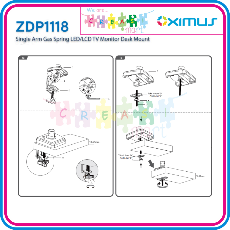 Oximus ZDP1118 Bracket Meja Single Arm Gas Spring Desk Mount Monitor/TV/LCD/LED VESA Maximal 100x100