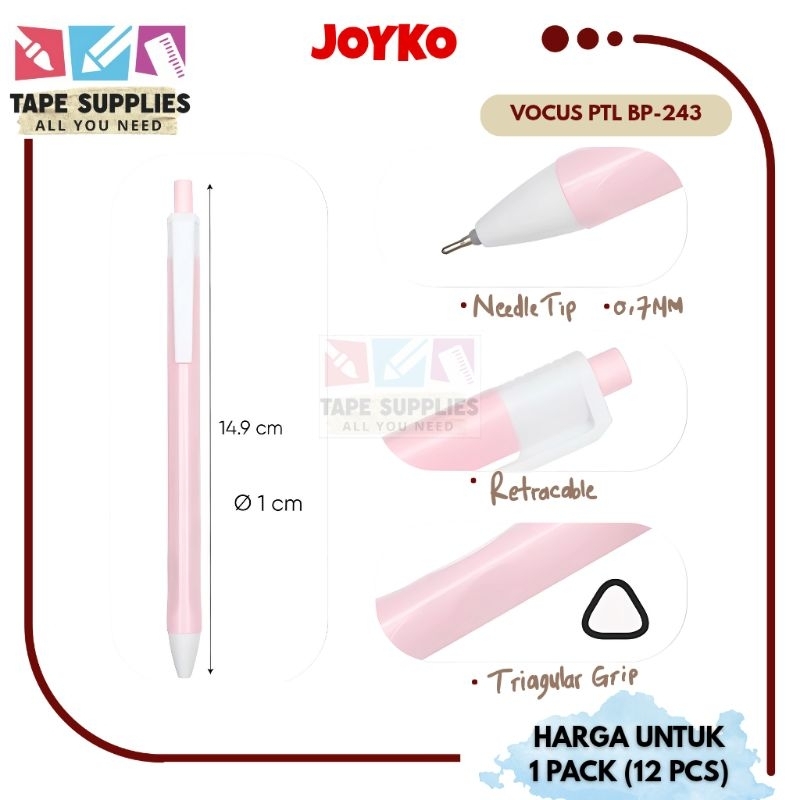 (1 Pk) Ball Pen Pulpen Pena Joyko BP-342/363 Vokus PTL 0.7mm (12 pcs)
