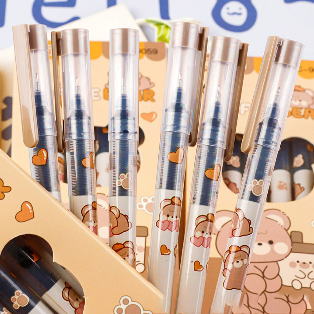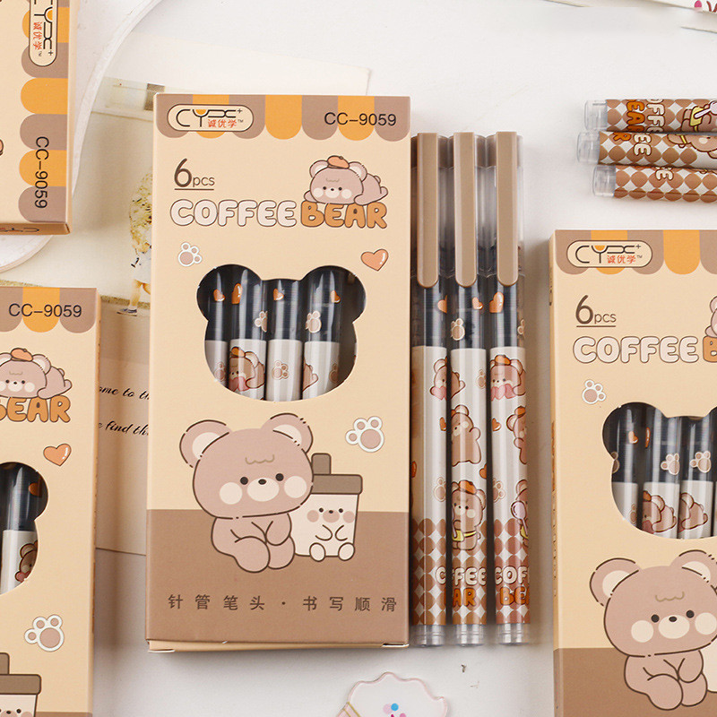[GROSIR ATK] 1 SET ISI 6 PCS PULPEN DENGAN UJUNG RUNCING MOTIF BROWN BEAR AND A COFFEE KAWAII