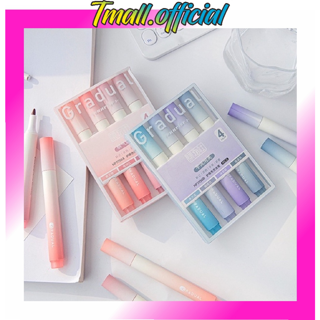 ❄ TMALL ❄ Highlighter Pastel Penanda Teks Set 4IN1 Alat Tulis Sekolah Textliner Stasionary Spidol Pen Marker Warna Grada
