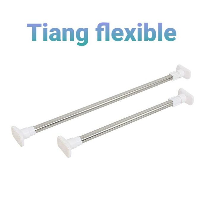 Paket Tiang Gantungan Serbaguna + Tirai Kamar Mandi Anti Air Motif Pilih Varian - Green Leaf, Plus Tiang