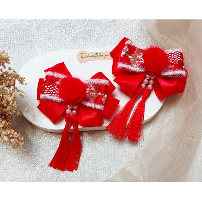 Sepasang Jepit Imlek/ Jepit pita/Jepit rambut/Jepit Anak/Jepit Korea/ Jepit premium