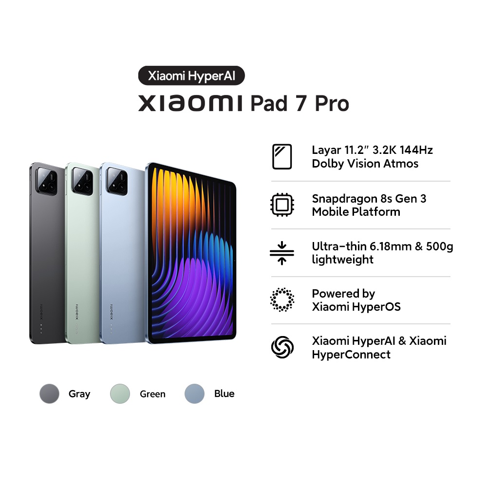 Xiaomi Pad 7 Pro (12/512GB) | Snapdragon 8S Gen 3 | Layar 11.2 3.2K 144Hz Dolby Vision Atmos | Ultra-thin & lightweight
