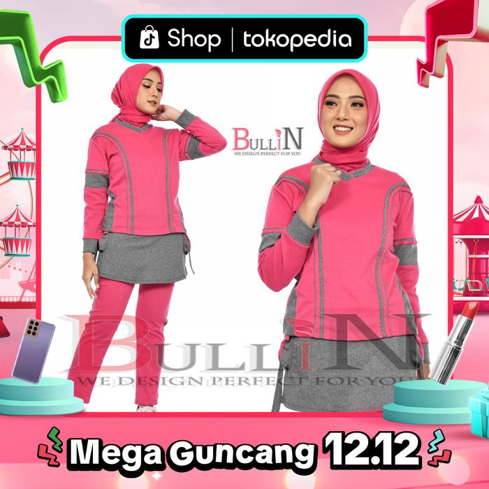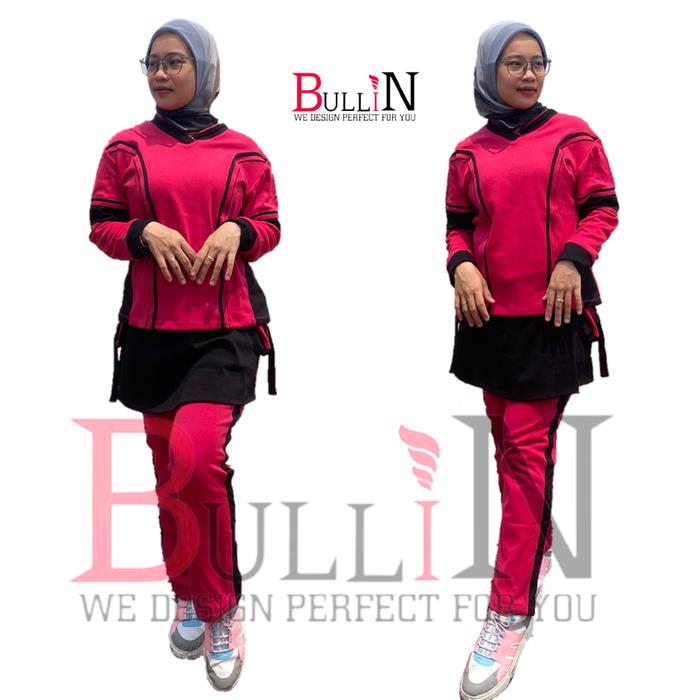 Bullin Setelan Baju Celana Olahraga Panjang Nadya / Setelan Zumba Nadya Sport - Merah/Hitam, L