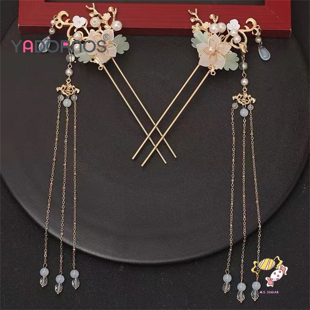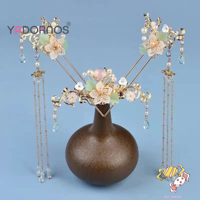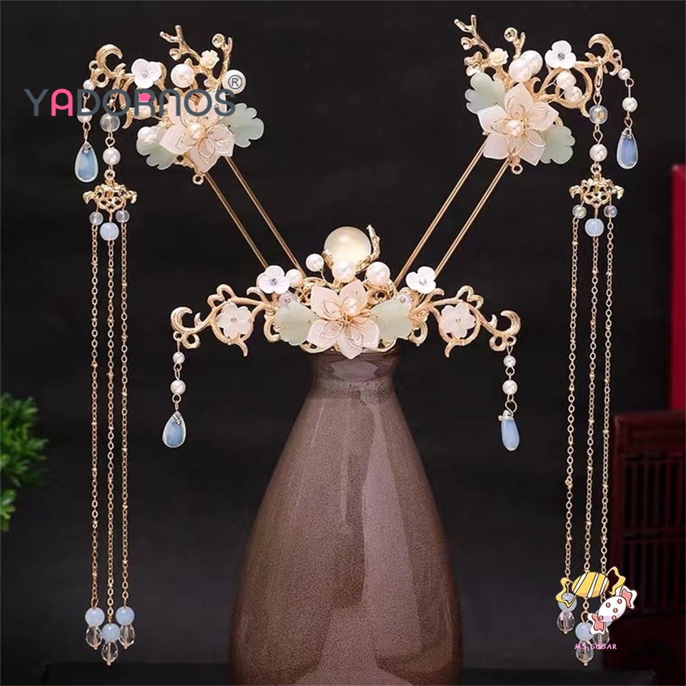 YADORNOS Set Jepit Rambut Handmade Bentuk Bunga Hias Berlian Imitasi Rumbai Untuk Wanita