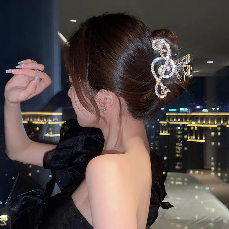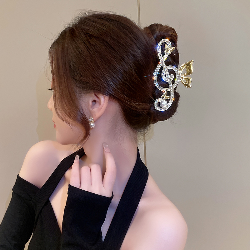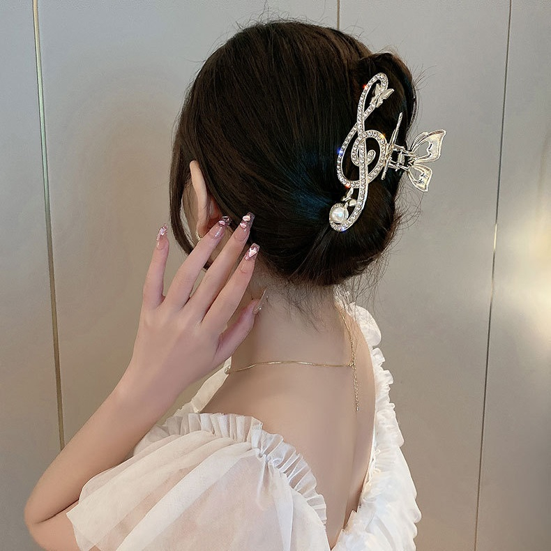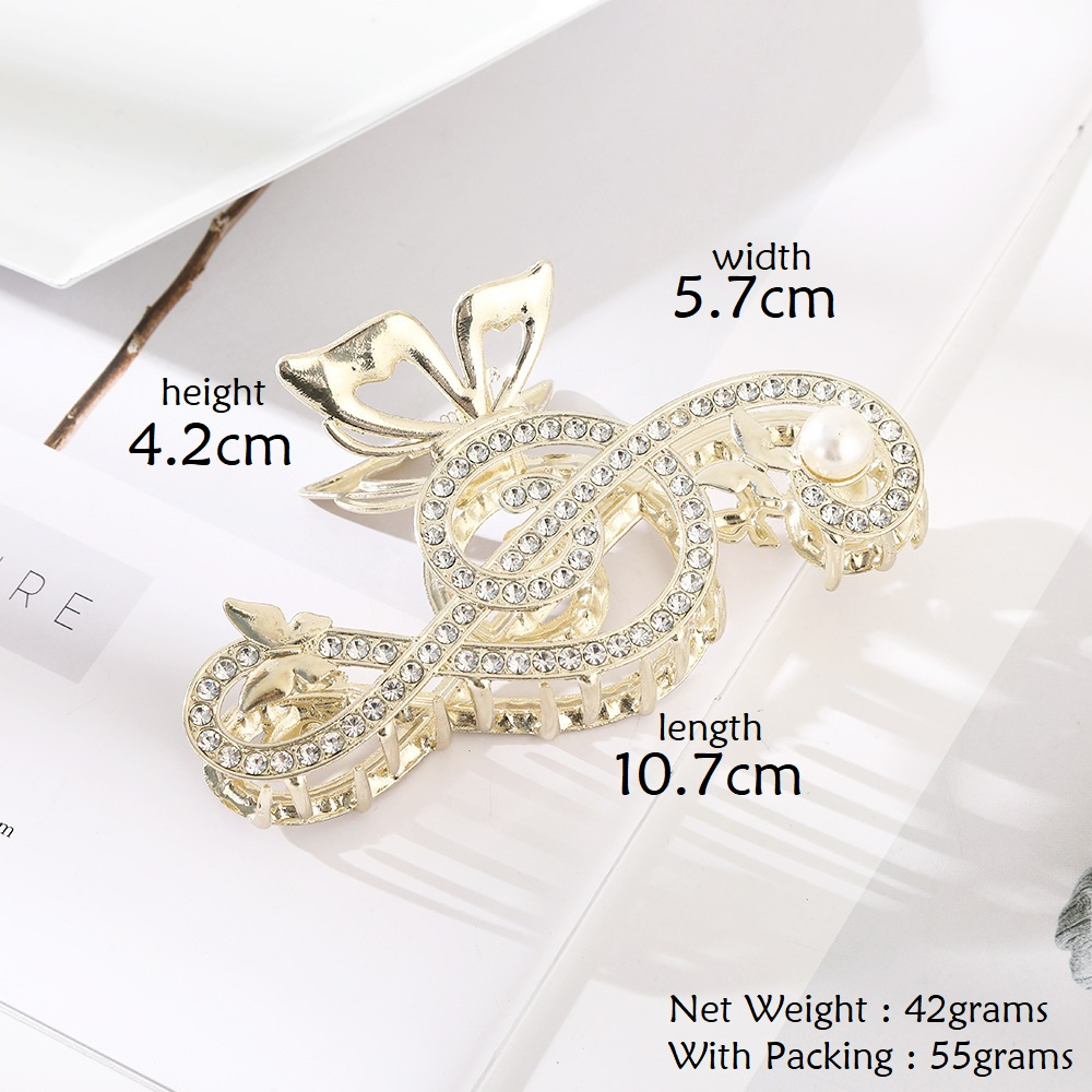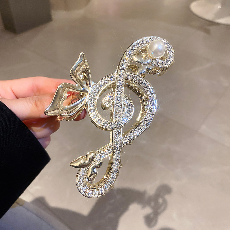 Jepit Rambut Bahan Alloy 10.7cm Bentuk Nada Musik dengan Aksesoris Permata Jedai Logam Rhinestone Music Note Shape Hair