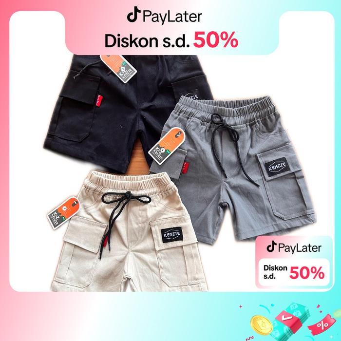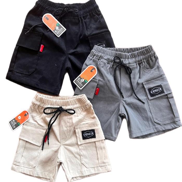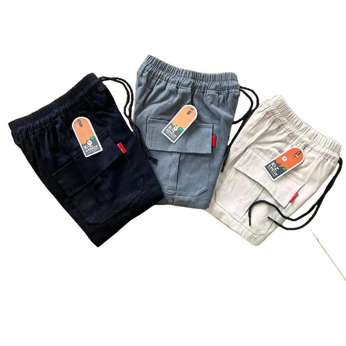 (Paket 3 Pcs) Celana Pendek Cinos Cargo Anak Laki-Laki 1-12 Tahun Katun - Hitam/Abu-Abu/Krem Fashion Anak-Anak Anak-Anak