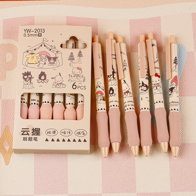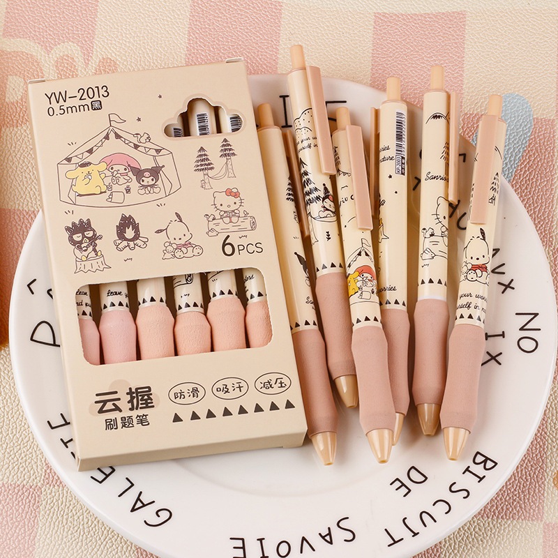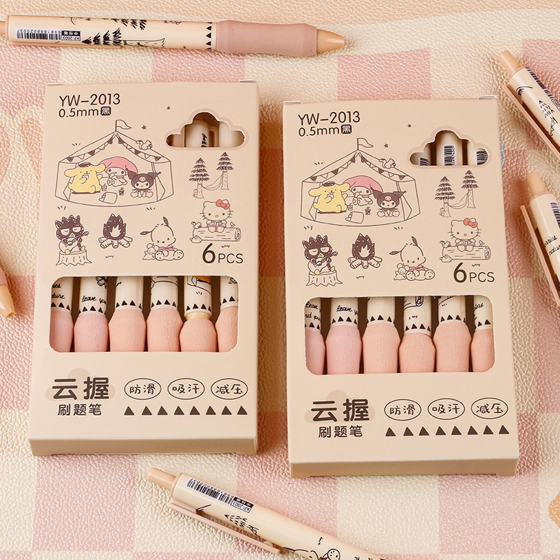 PULPEN CETEK PLUFFY SANRIO 1 SET ISI 6 PCS EMPUK LUCU IMUT PREMIUM FREE BOX