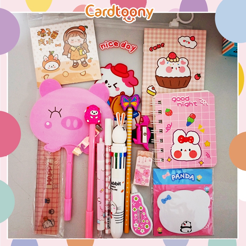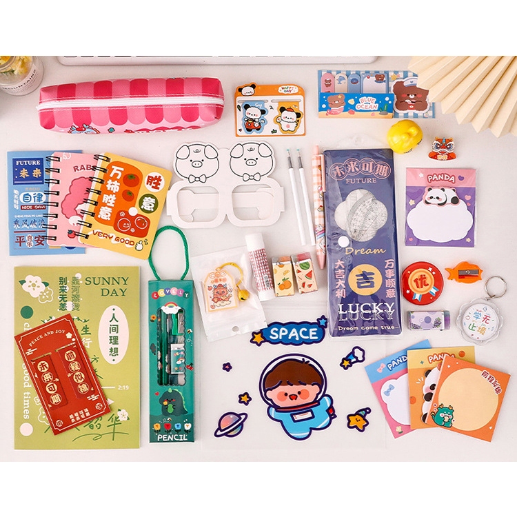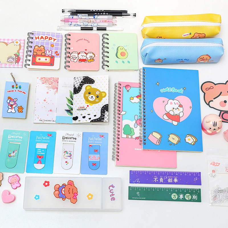 Paket Alat Tulis Pulpen Stiker Memo Tempel Penghapus Pensil Buku Penggaris Rautan Stationery Set