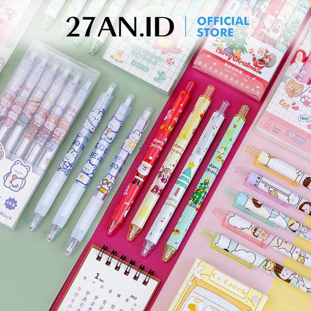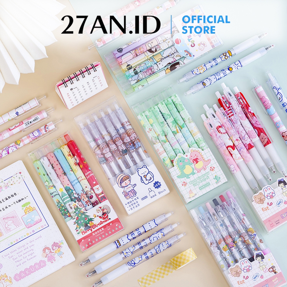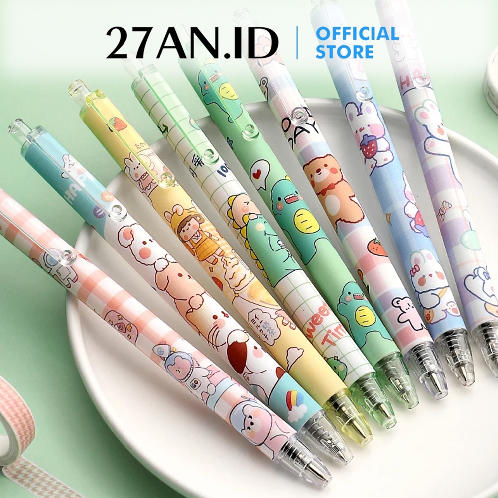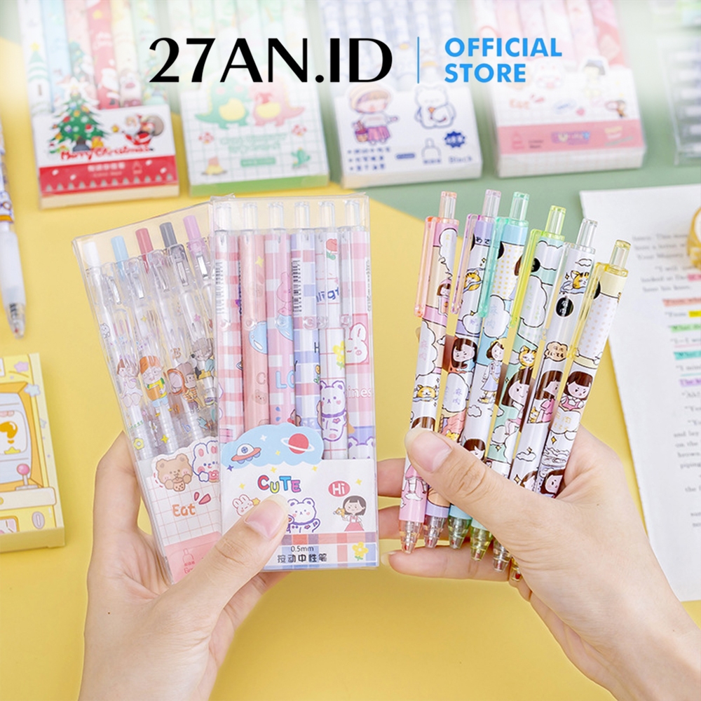 (27AN.ID) Pulpen Set Karakter Lucu H643 Pulpen Mekanik isi 6pcs Bolpoin Gel