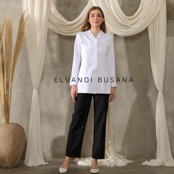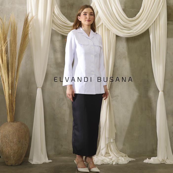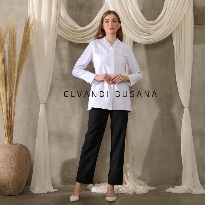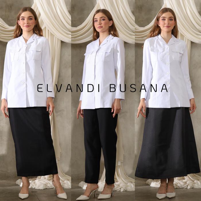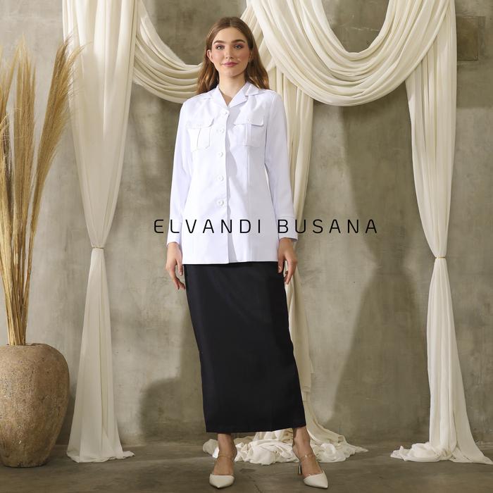 Setelan Jas Wanita / Seragam Kerja Blazer Wanita / Seragam Guru / Setelan Baju Guru Wanita - 7005 Putih Hitam Setelan Ro