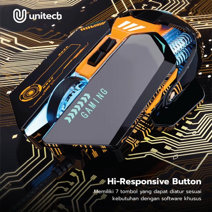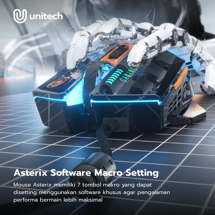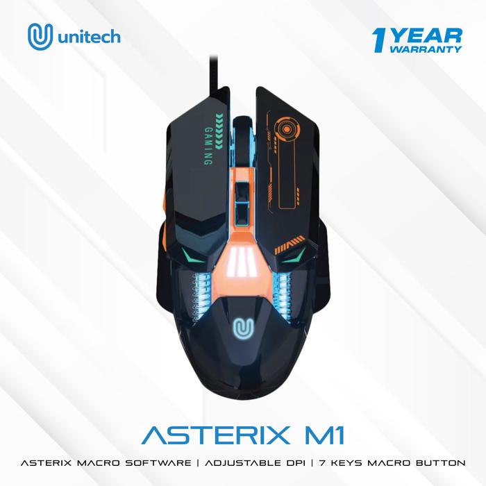 Unitech ASTERIX M1 Mouse Gaming Kabel Macro Makro 7200 DPI 7 Tombol Bisa Program Responsive Button