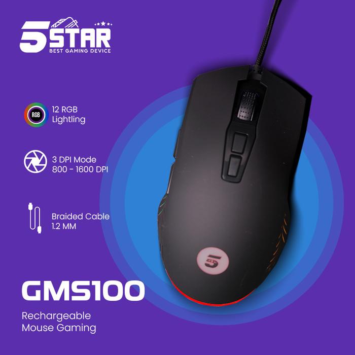 5Star Mouse Gaming GMS100 7200DPI LED Optical USB Wired Gaming Mouse 12 Buttons PC Ergonomic Mouse Black