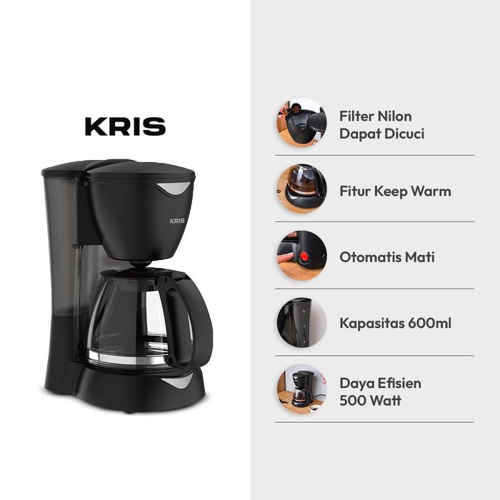 AZKO Kris 600 ml Coffee Maker Swing 550 watt - Hitam Mesin Kopi Espresso Machine Alat Pembuat Minuman Kopi