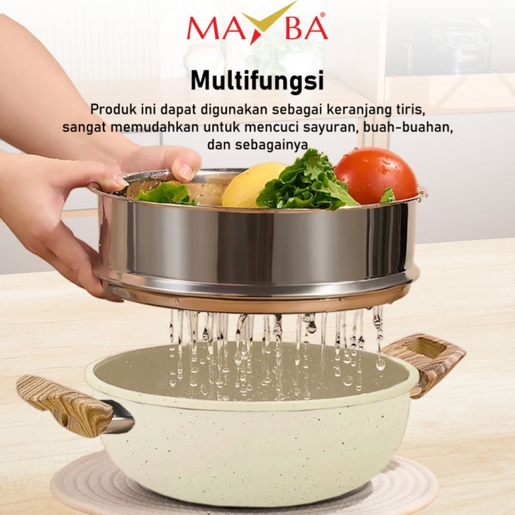 TERBARU MAYBA STEAMER 24 CM Stainless steel steam kukusan untuk panci ukuran 24cm jadi dandang kukus premium icegc
