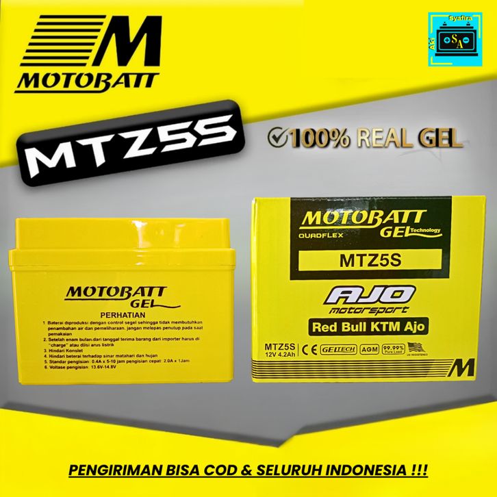 Aki Motor Beat Scoopy Vario 110 Revo Kharisma MOTOBATT MTZ5S GEL 4,2Ah
