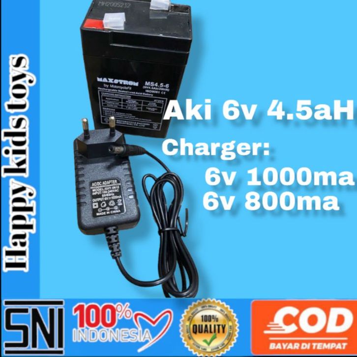 Aki 6v 4.5Ah, Charger + Aki, Charger 6V 1000mA