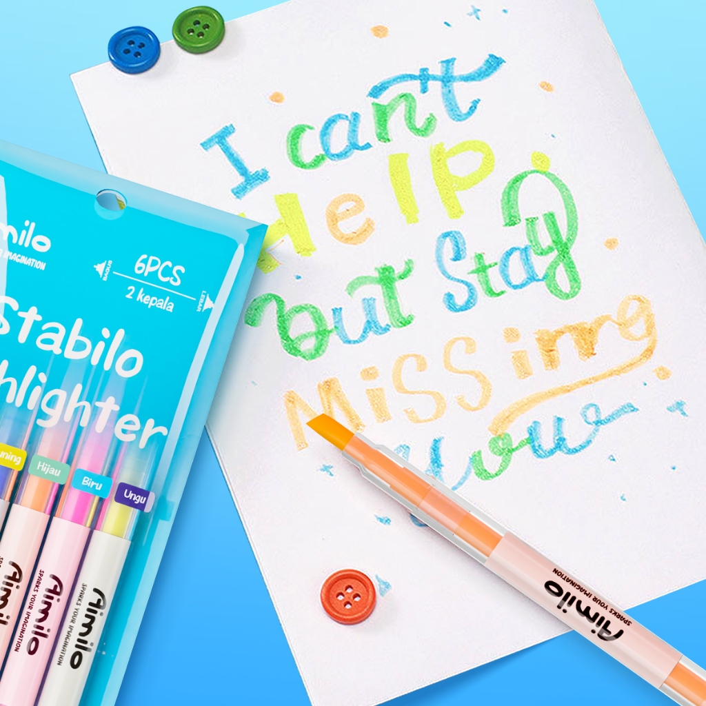 [READY] Aimilo Stabilo Pastel 1 Set Highlighter 2 Sisi 6 PCS