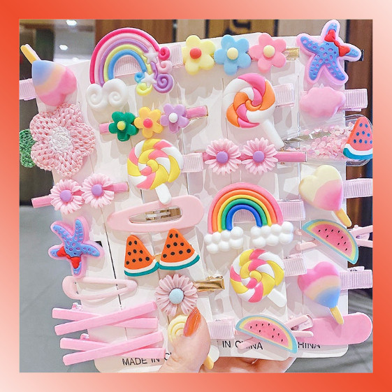 LAMMORO > JR09 Jepitan Rambut ANAK Lucu Set 14 in 1 Korea Hair Pin Jepit Clips 35B1