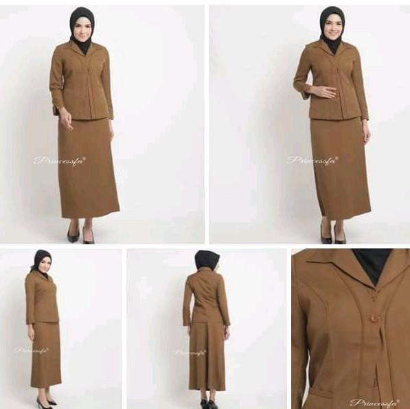 Stelan Pakaian Kerja Wanita Coklat Tua/ Baju Kerja Wanita Coklat Tua Rok A /Stelan Baju Kerja Wanita Coklat Tua Rok A Se