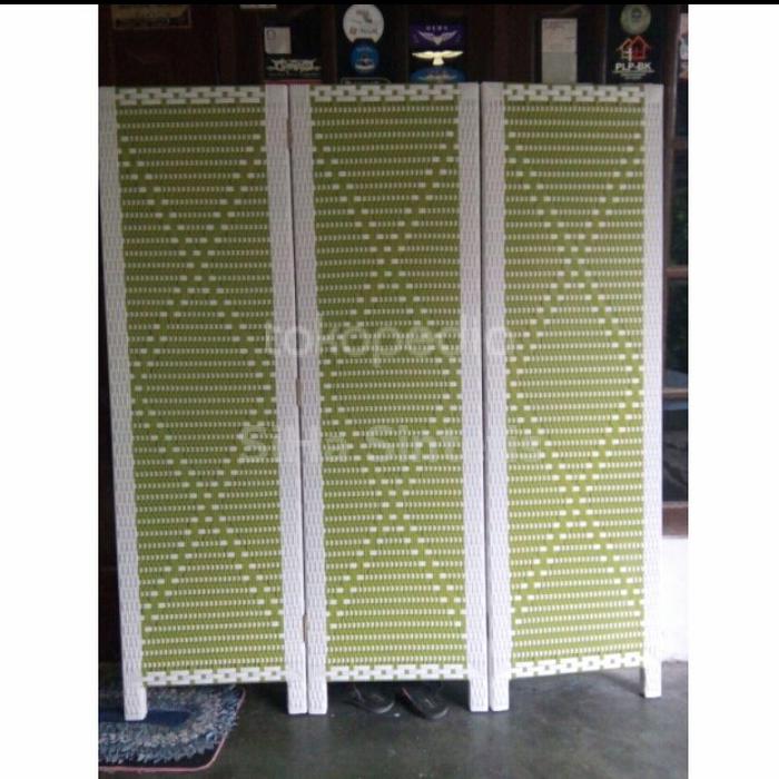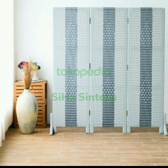 Sketsel Partisi Pembatas Ruangan Portable Rotan Sintetis 3 Daun Pintu - Putih-Hitam, 3X50X170