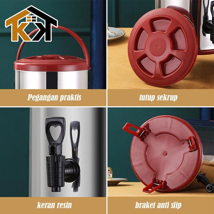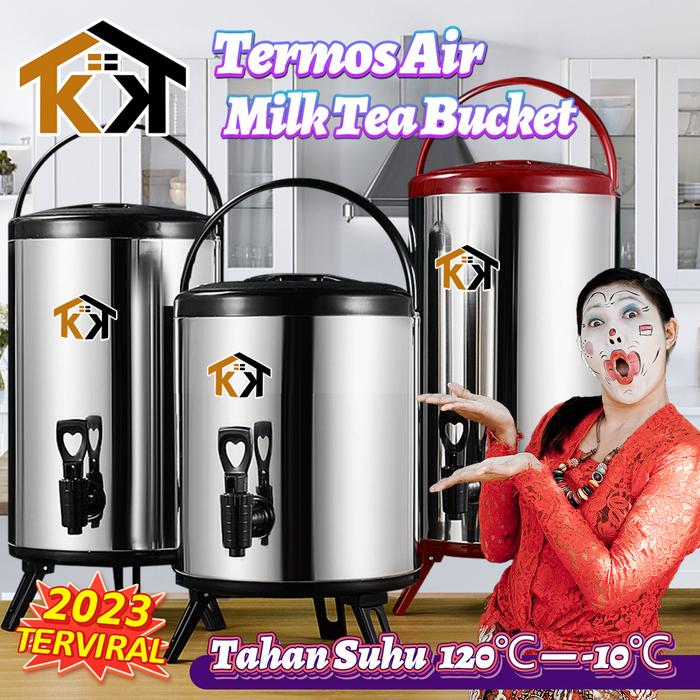 Kk X Inem Jogja Termos Air Milk Tea Bucket Dengan Kran Stainless Steel Water Junk - Hitam - 10L