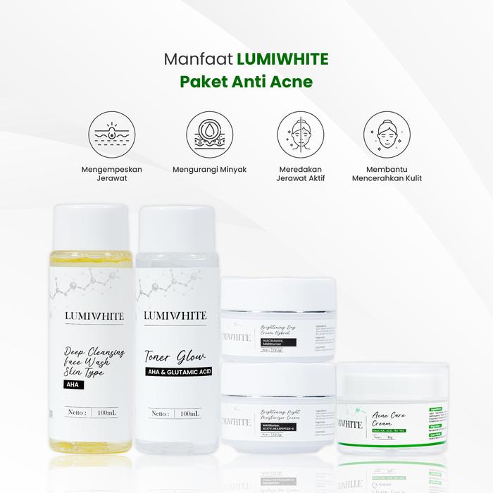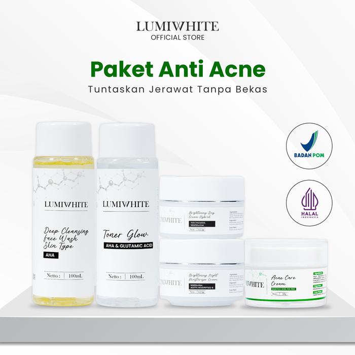Lumiwhite - Paket Acne Care Lengkap Untuk Jerawat (Facewash, Toner, Day Cream, Night Cream Dan Acne Cream)