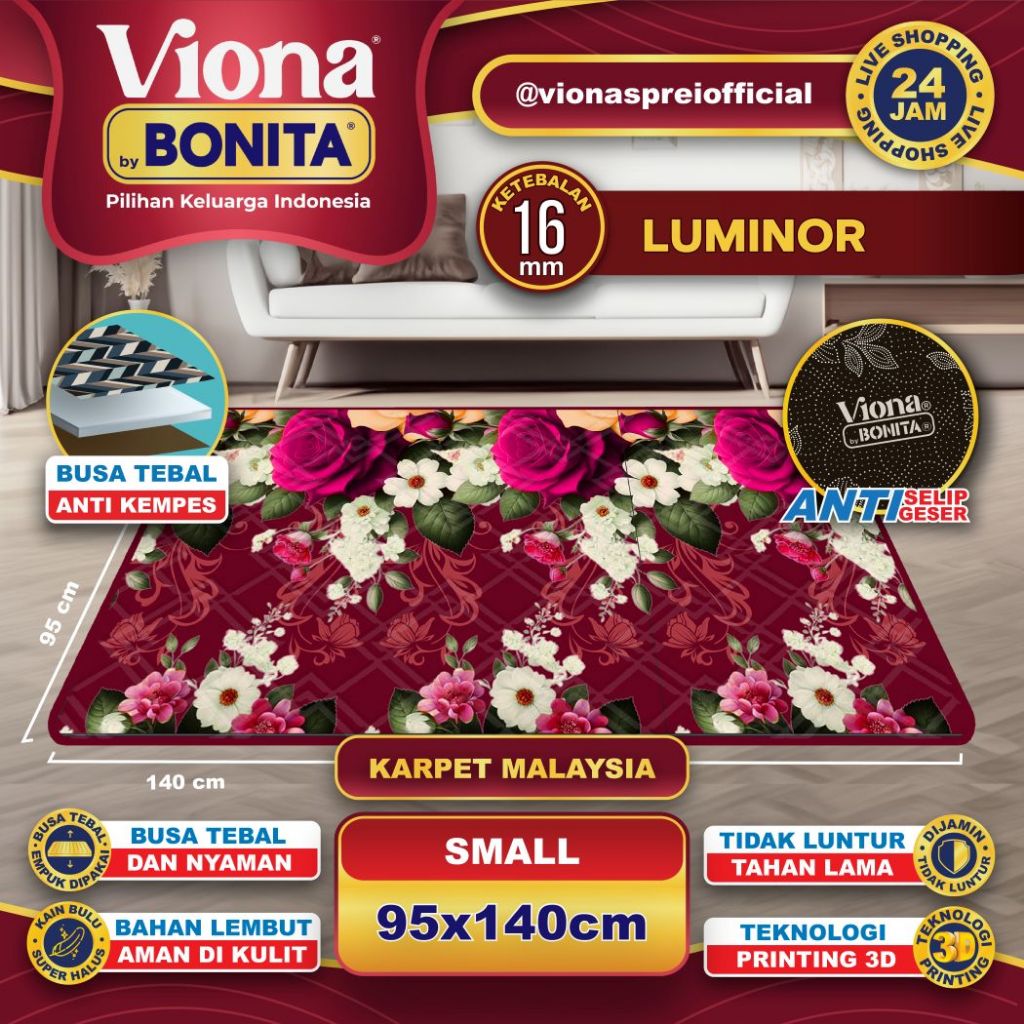 VIONA BONITA 95x140 Karpet Busa Malaysia 16mm Luminor Motif Bunga - Karpet Lembut & Anti Licin