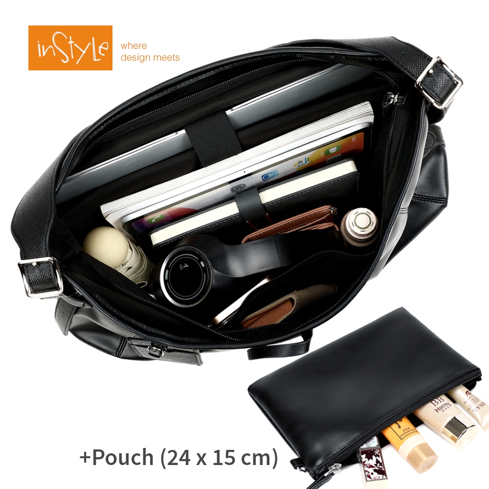 Tas Laptop 14 inch Bahu Selempang Kulit PU Leather Wanita Korean Style Bag (T14-076)