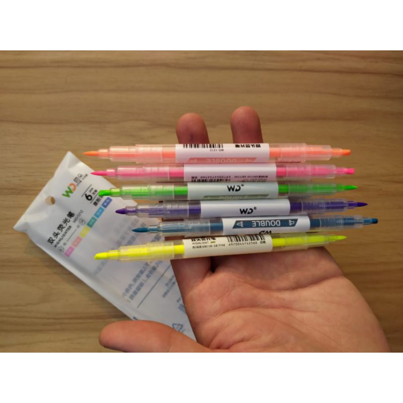 stabilo highligther 2 sisi 1 set 6 pcs alat tulis sekolah lucu