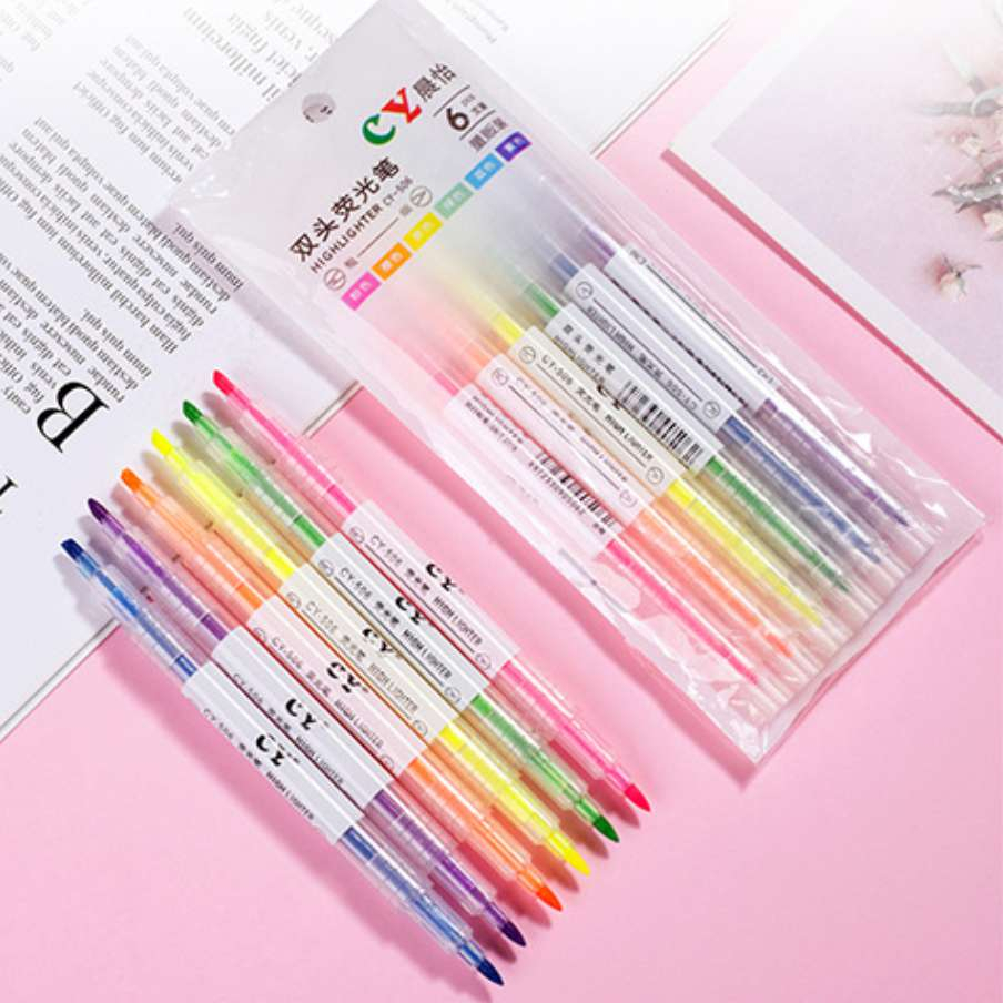 Stabilo Warna Dua Sisi Isi 6 In 1 / Set Highlighter Warna Double Side