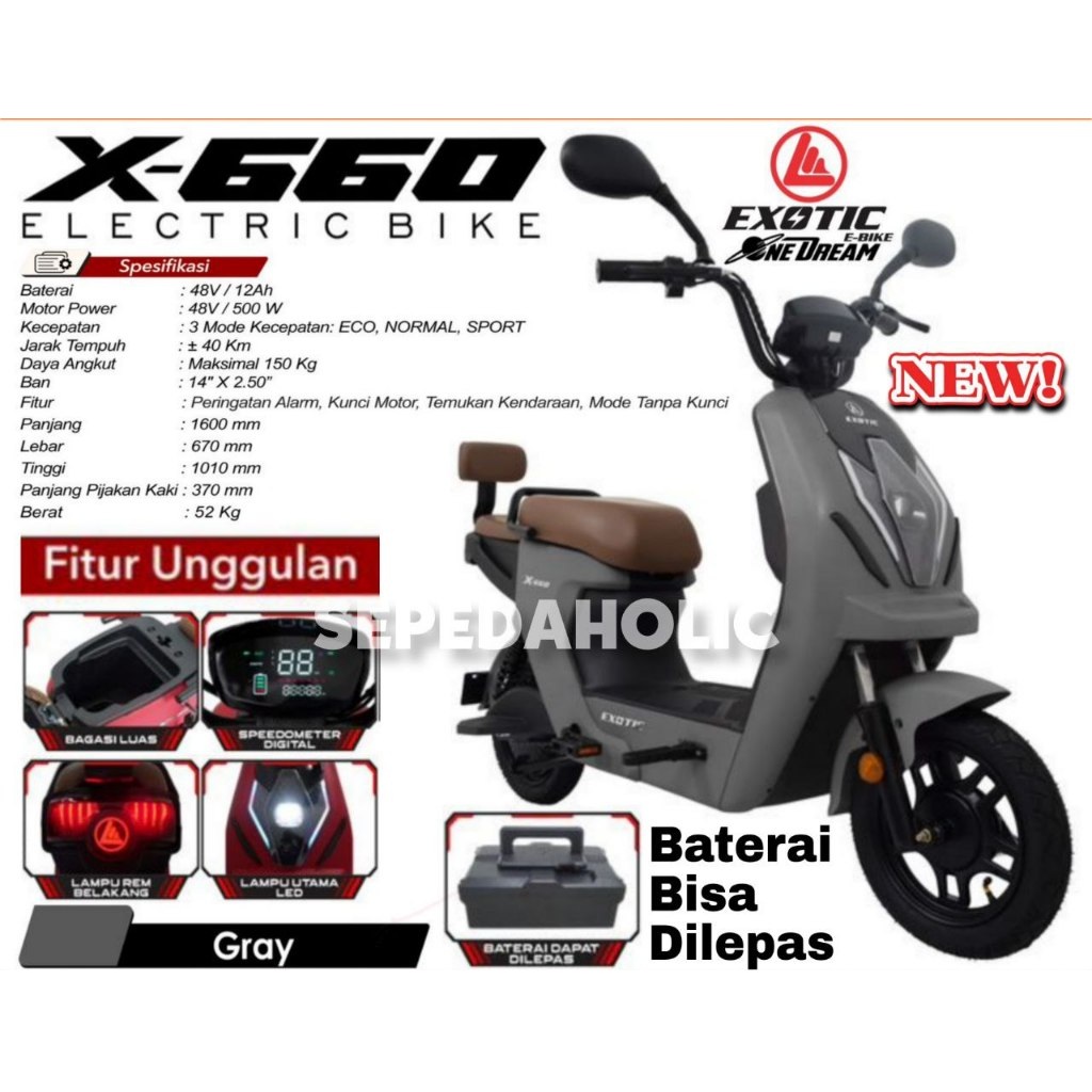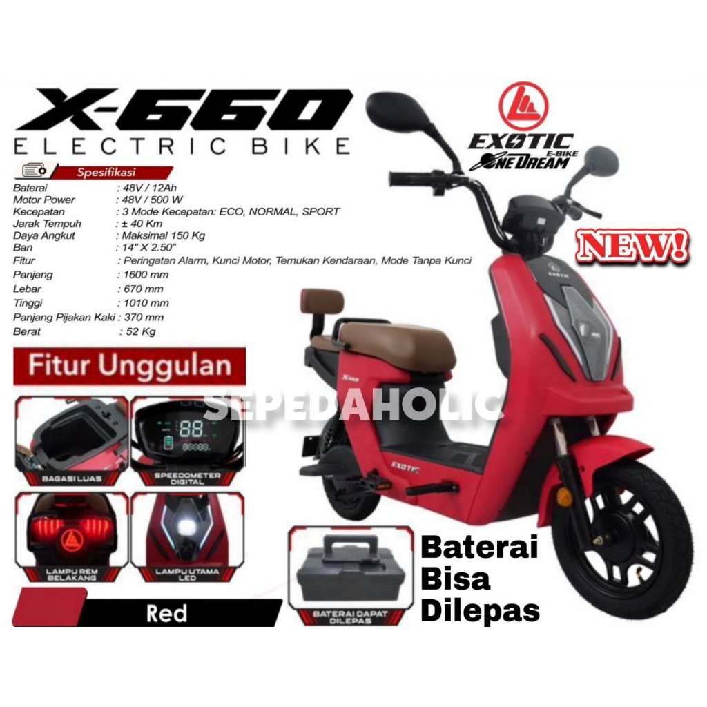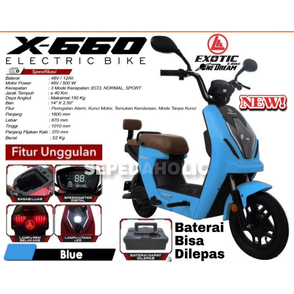 [Mall] Sepeda Listrik EXOTIC X660 X 660 BY PACIFIC 500 Watt Removable Battery Baterai Bisa Dilepas