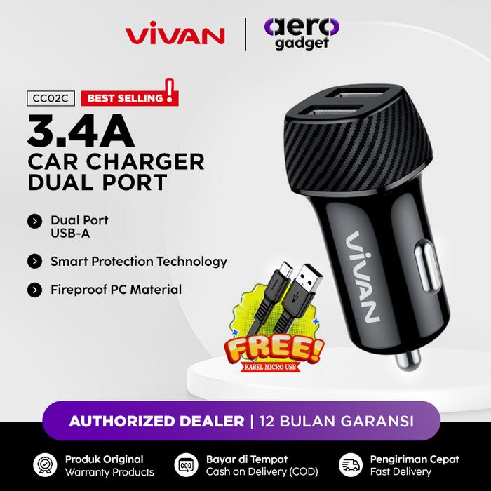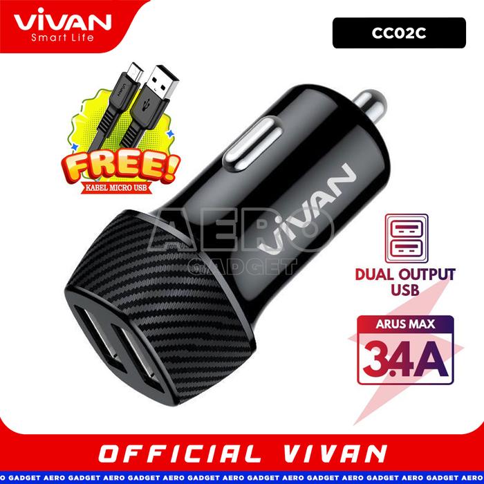 Vivan Car Charger Quick Charging Carger Mobil Dual Usb 3.4A Cc02C