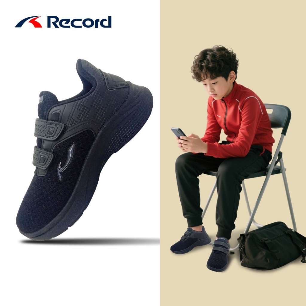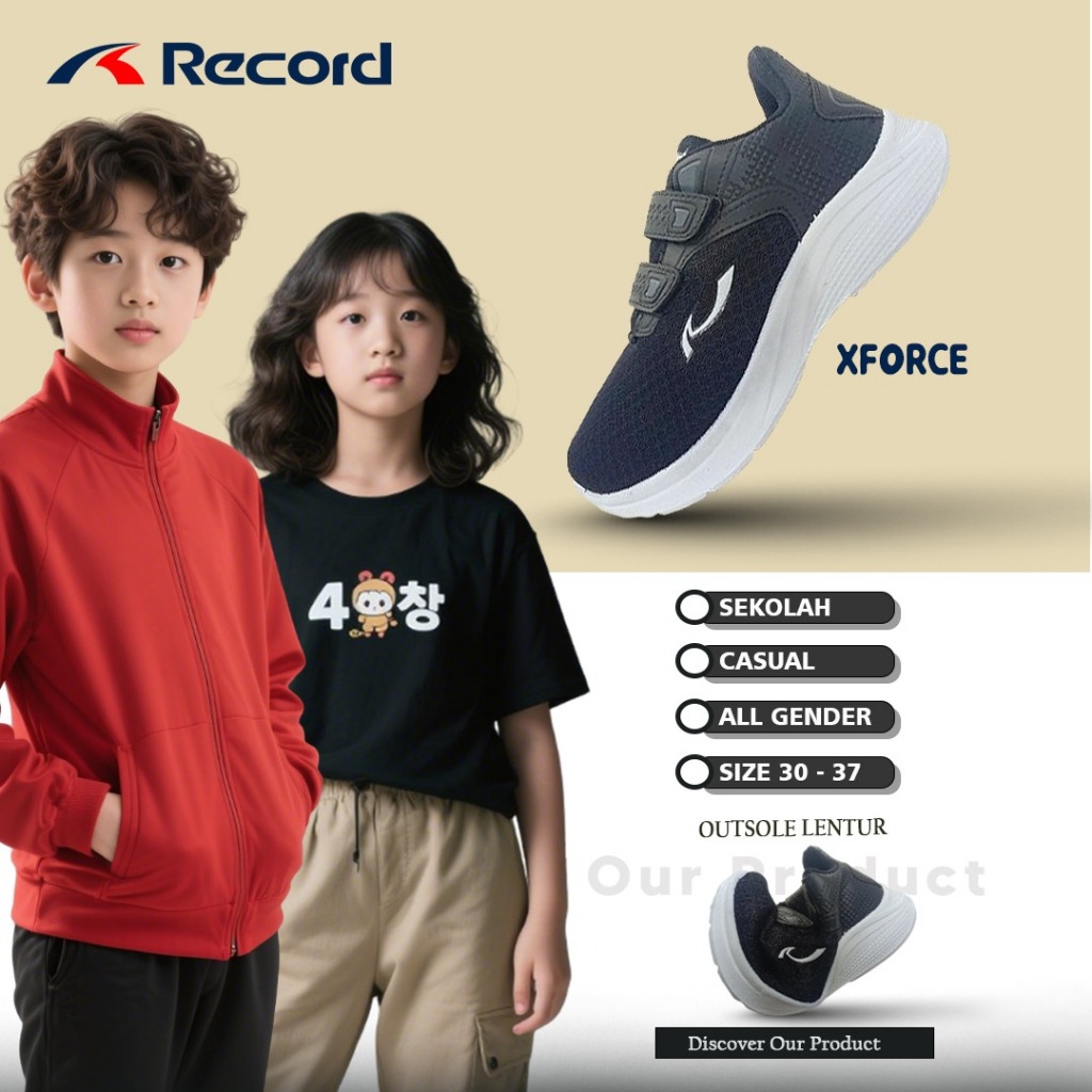 RECORD XFORCE SEPATU SEKOLAH ANAK TK SD SMP 4-13THN ALL BLACK HITAM PUTIH 30-37 PEREKAT COWO CEWE