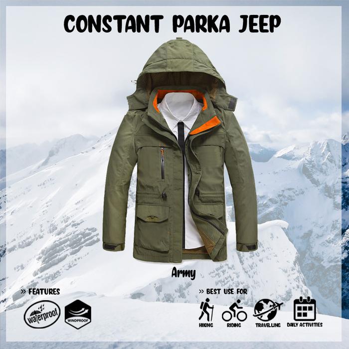 Jaket Gunung Outdoor Parka Waterproof Anti Air - Parka Jeep Army, M