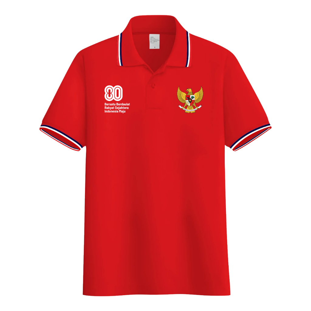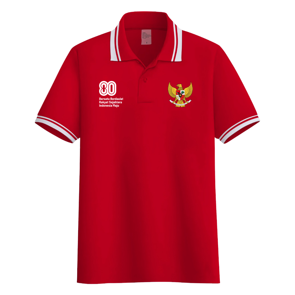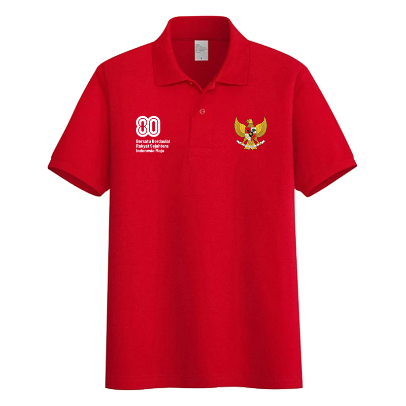 Kaos polo pria HUT RI 80 / Kaos Kemerdekaan RI 80th / Kaos 17 agustus 2025 / kaos pria merah List II
