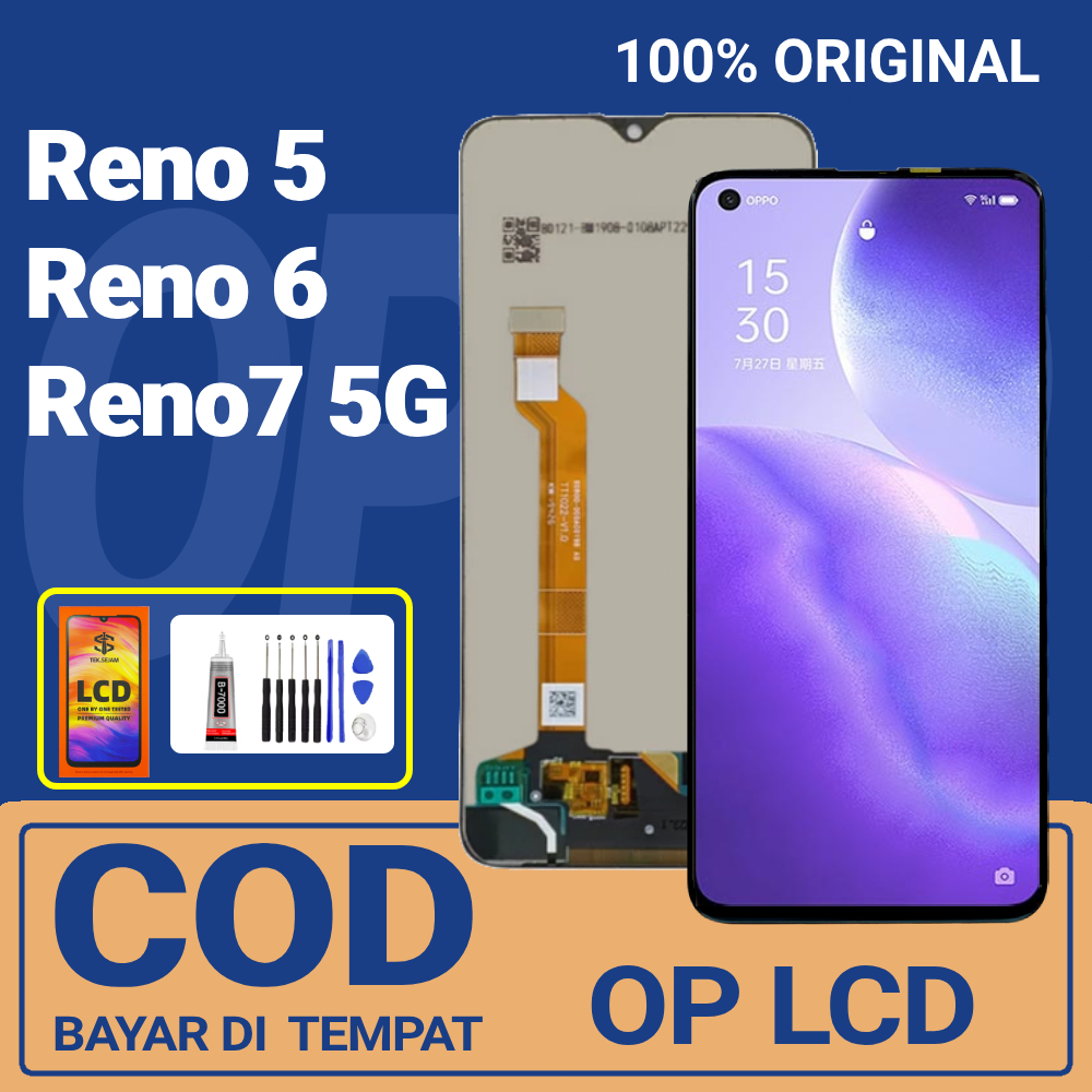 LCD Reno5 4G 5G / reno6 4G 5G / Reno7 5G HIGH HD TOUCHSCREEN ORIGINAL 100 FULLSET + LEM OBENG